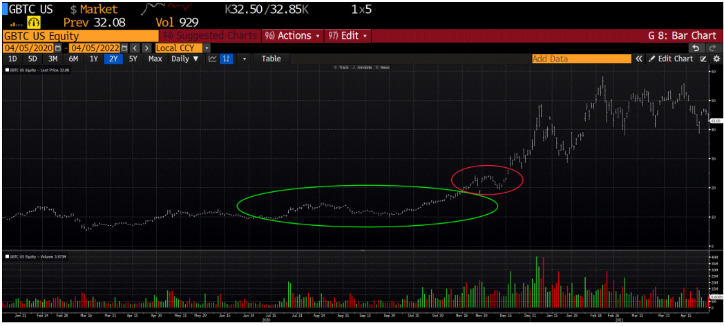 Kuppy ne more spat od navdušenja. Pravi, da vidi enak vzorec za SPROTT fund, kot ga je pred kratkim imel GBTC: