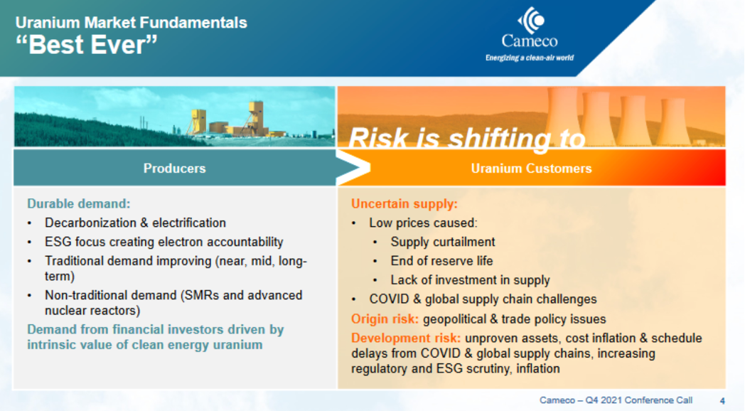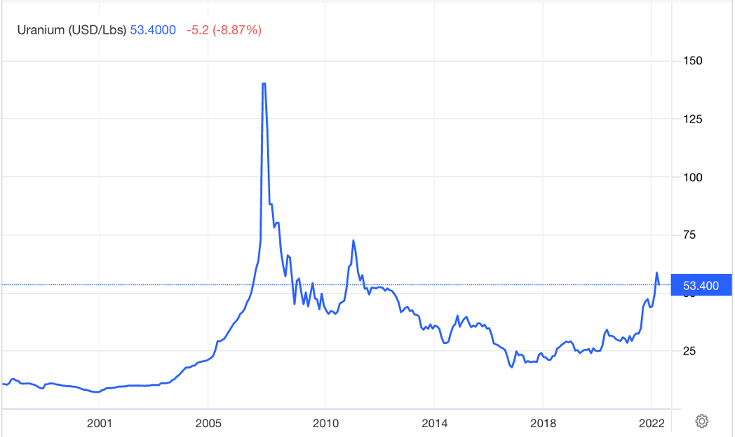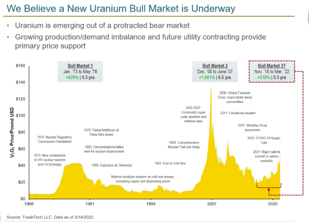 Leta 2000 se je začel nov bull cikel, kot posledica primanjkljaja urana na trgu, saj je večina proizvajalcev enostavno propadla v zadnjih 15. letih. Supply je nato prihajal iz zaprtih nukleark, zalog, ki so bile namenjene za jedrsko orožje, ipd. Okoli leta 2002 je tega pač zmanjkalo in proizvajalci ne morejo čez noč dvignit proizvodnje, sledil je boom do 2007 oz 2011.