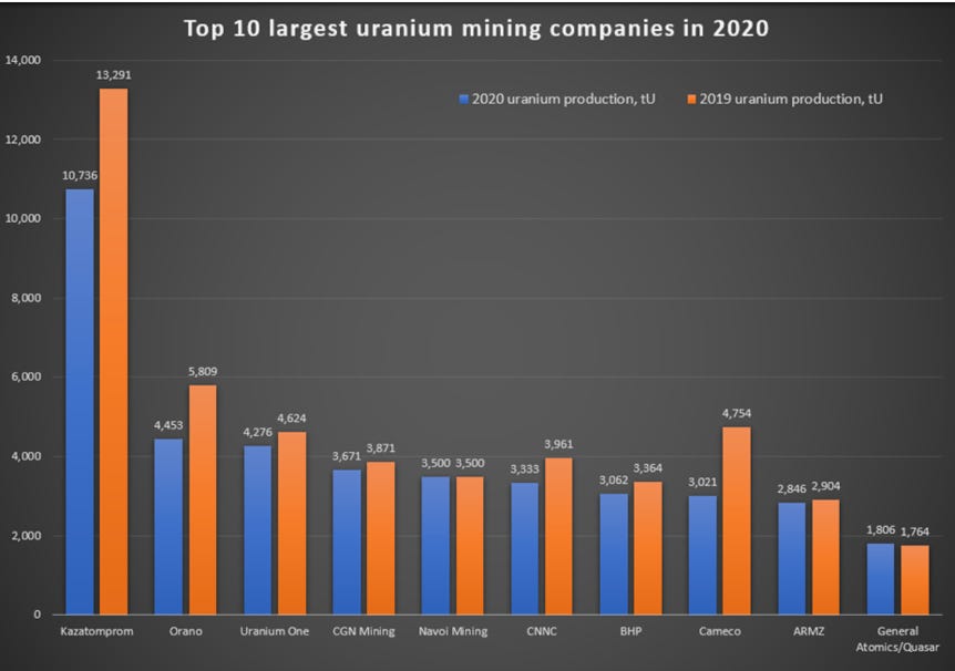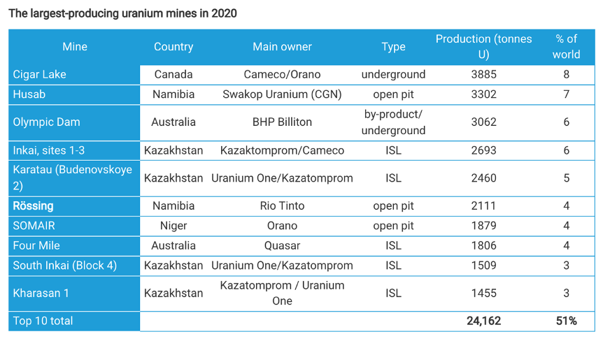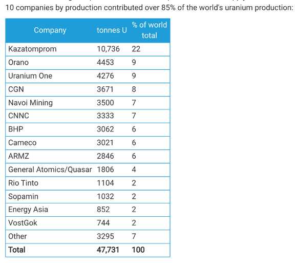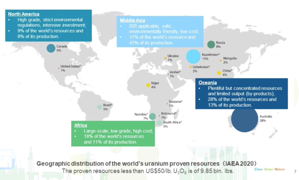 Od najdbe urana do samega izkopa traja 10-30 let, zato so te številke o resorsih samo informativne - v realnosti je treba gledat potencialno produkcijo (tista, ki lahko zaštarta v roku parih let) in dejansko današnjo produkcijo. Zaradi covida je ogromno izkopov v C&M (care & maintanance) stanju, kar pomeni, da jih bo potrebno ponovno odpreti, ampak tudi to traja par let, kot bomo spoznali kasneje.