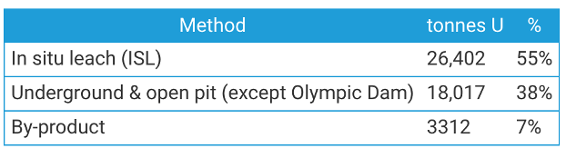 Danes se večina urana ne pridobiva s konvencionalnimi/hard rock/open pit metodami, ampak z In-situ Recovery/Leach, nekaj malega ga dobimo tudi kot stranski produkt: