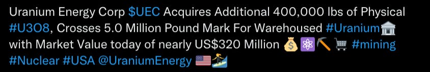 Sam preferiram sektorje, kjer outcome ni odvisen od političnih odločitev. Uran je definitivno eden izmed teh, čeprav na prvi pogled ne izgleda tako.