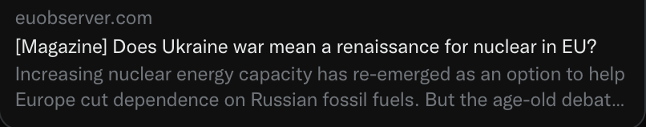 Tudi Ukrajinska situacija bo mogoče pripomogla k mindsetu glede energetske neodvisnosti in s tem odobravanje nukleark:
