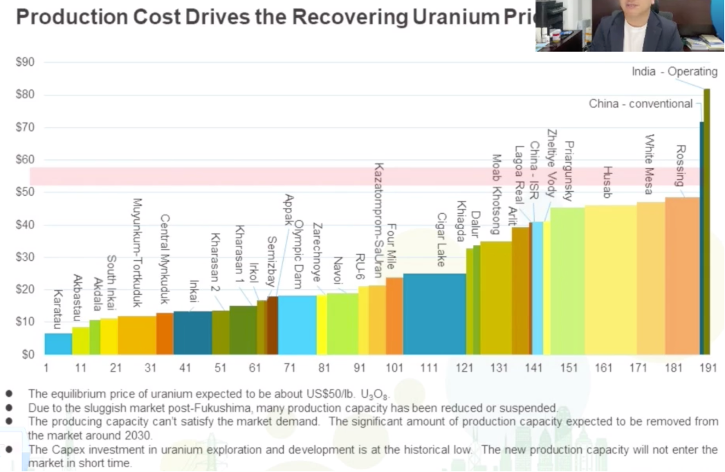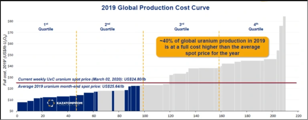 To pomeni, da so profitabilni samo minerji, ki uporabljajo ISR (In situ) metodo - zato ima recimo Kazatomprom prednost. In zato bo potrebna solidna cena na cca 65-70$, preden se začne produkcija še pri ostalih res zbujat.
