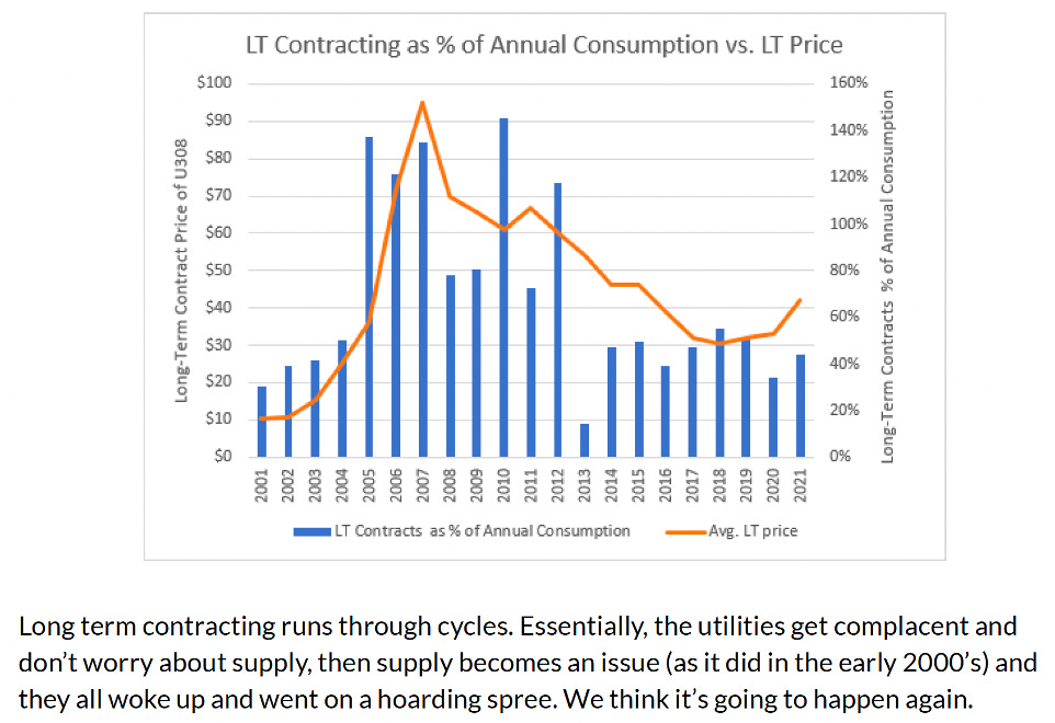 Okolje zadnjih let je pomenilo, da so tudi porabniki/posredniki začeli sklepati vse manj pogodb za lockanje dolgoročnih cen, ker enostavno ni bilo potrebe, saj je bila zadnjih 10 let po vsakem izteku pogodbe cena urana manjša.
