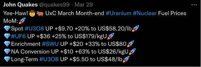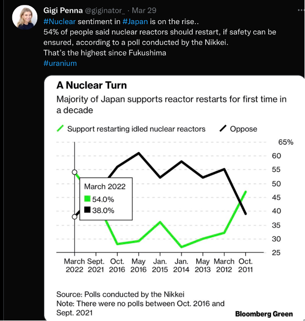 Edini argument za bearish case je, da se ponovno zgodi neka huda nesreča in več kot pol sveta obrne ploščo ter začne takoj zapirat nuklearke, ampak tudi to ni možno iz danes na jutri, ker bi ostali brez štroma. Torej…