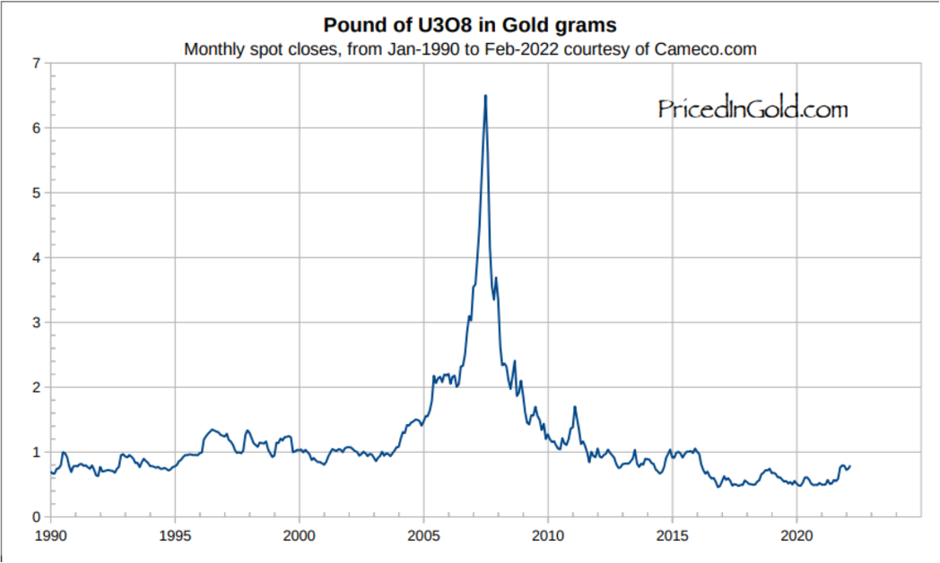 Če upoštevaš ceno urana, popravljeno za inflacijo ali izraženo v zlatu, zgubiš čeljust: