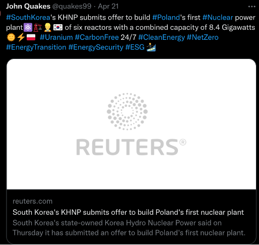 V svetu pa se v sklopu Net zero in neodvisnosti od fosilnih goriv, ipd. dogajajo tektonski premiki. Dojeli so/bodo, da je LNG drag, da je v EU manj vetra in dežja(hidro), kot so modeli predvidevali, da je energetska neodvisnost strateškega pomena, da Japonska ne želi smoga in ne želi biti odvisna od importov s Kitajske...