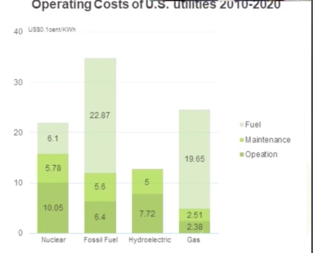 Gorivo je v nuklearki le 5% celotnega stroška obratovanja, medtem ko je pri recimo plinarni ta strošek 70%! Razlika izhaja iz ogromnega začetnega stroška, ki je potreben za izdelavo nuklearke.