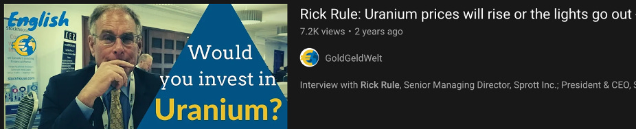 Rick Rule, Mike Alkin, Justin Huhn, idr. intervjuji youtube