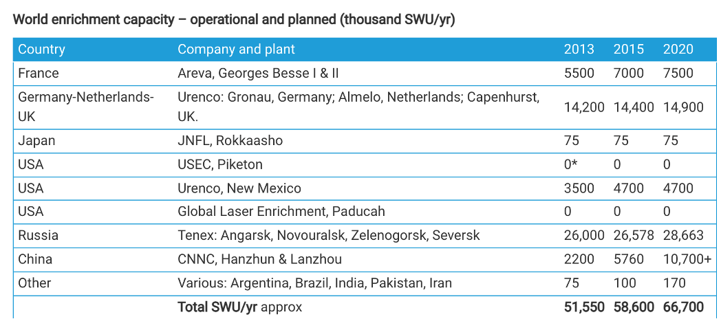 Rusija obogati 43% svetovnega urana. Kitajska še dodatnih 15%. (pisano pred vojno)