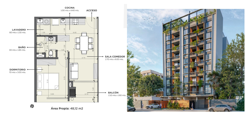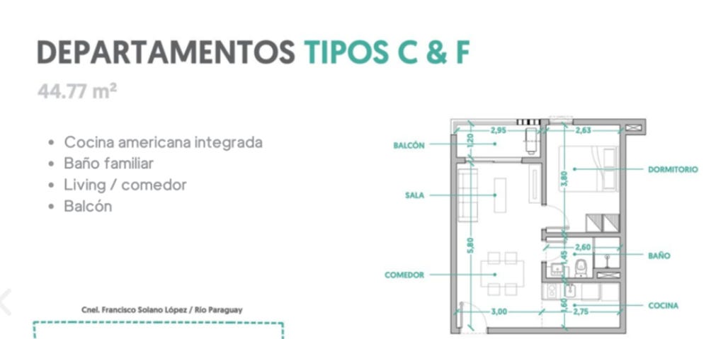 Molas Lopez; 44m2; CENA: 75,000 USD; $1700/m2