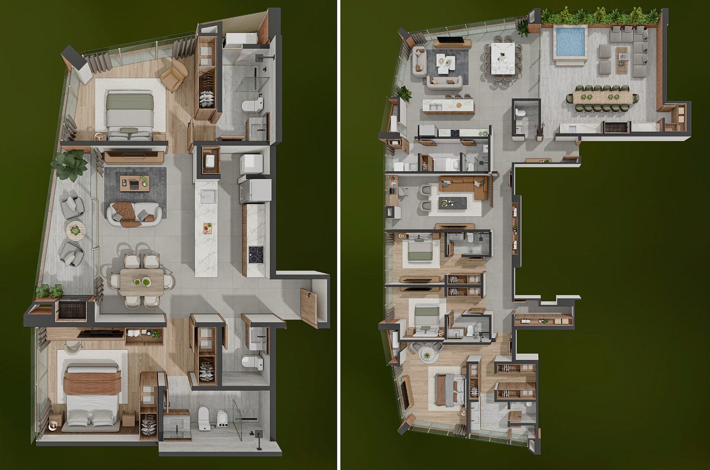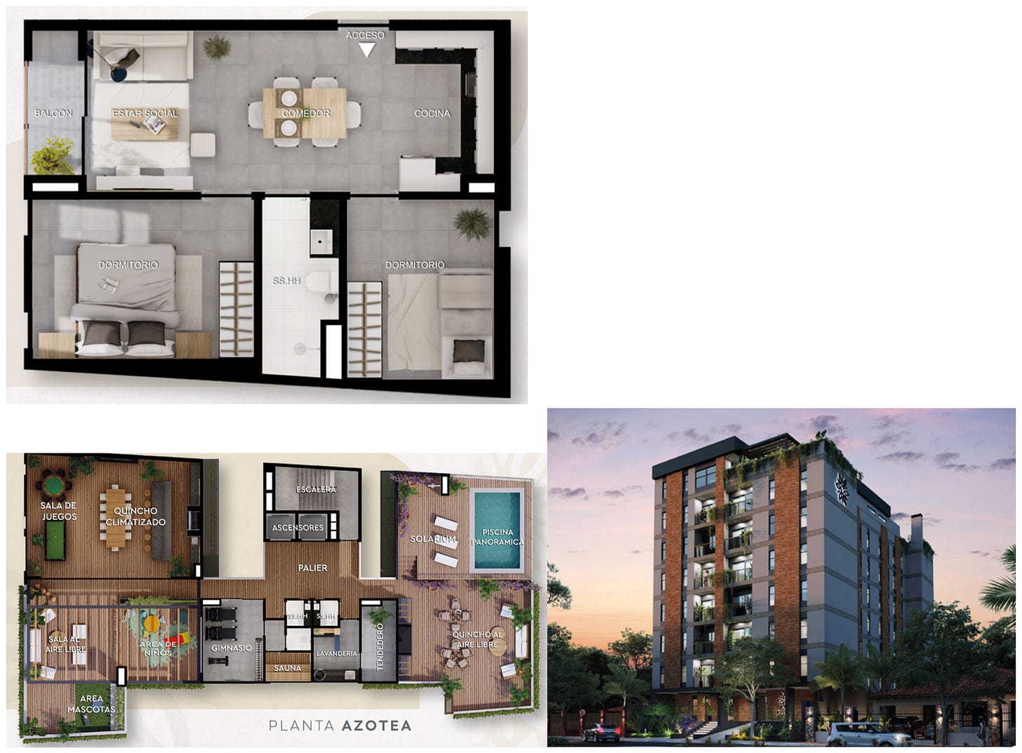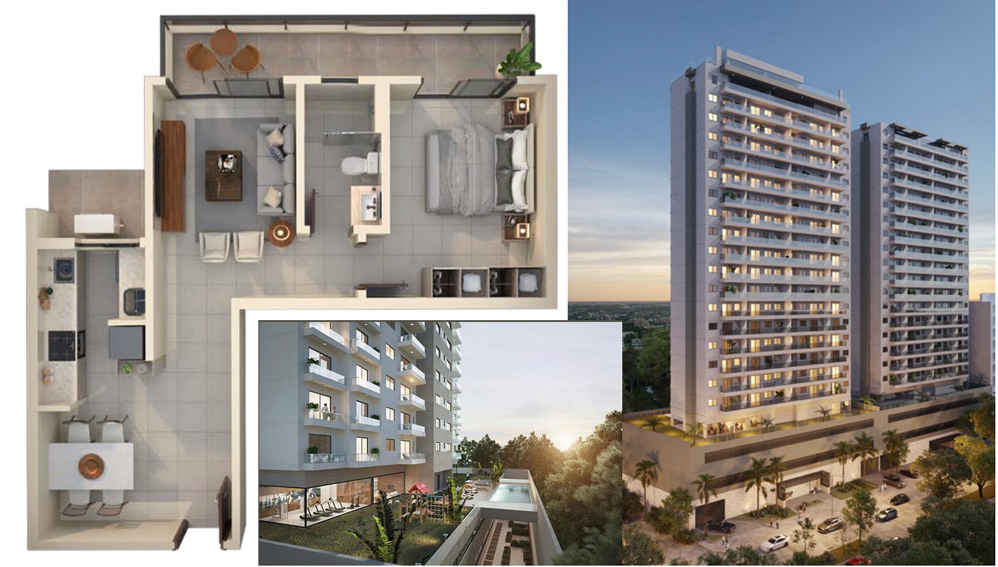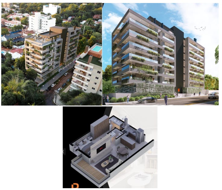 Desno pa je primer stanovanja 315m2, od tega 235m2 notranje površine in 80m2 zunaj. Terasa z žarom za goste, jacuzzi, prostori za služkinje, itd. Cena? 695.000 USD. Zelo poceni za takšno stvar. Tudi služinčad (varuška, čistilka/kuharica) je v Paragvaju še vedno navada in poceni. To stanovanje sicer ni investicija, temveč top lifestyle.