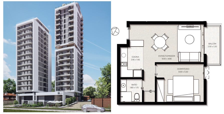 Zelo dober donos imajo tisti, ki so kupili enosobno stanovanje v začetku 2023 za 1000-1250 EUR/m2, ki je bilo zgrajeno ob koncu 2024/začetku 2025, ko sta turizem in inflacija eksplodirala. Nakup 45m2 stanovanja za cca 57.000 EUR takrat, se sedaj oddaja za 1000 EUR mesečno na Airbnb ali dolgoročno z visoko zasedenostjo. Tako da je neto donos po vseh odbitih stroških +10%. Mnogi nepremičninarji to uporabljajo kot dokaz, da so stanovanja v Paragvaju super investicija. Res so bila, vendar to ni garancija, da bo tako tudi naprej. Preveč zgrajenih enakih stanovanj, ki so kupljena za višjo ceno kot pred dvemi leti, garantira slabši donos (ampak še vedno večji, kot v EU/SLO). Pozitiva je, da Airbnb trg še ni razvit v smislu, ker primanjkuje res dobro opremljenih stanovanja - oprema in pozornost na detajle je po večini slaba, zato ni težko izstopati.
