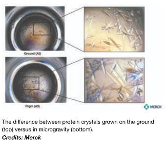 Vzrejanje proteinskih kristalov (protein crystals) za namene novih vrst zdravil, cepiv in dare I say.. mogoče celo genskih terapij. Povezani pojmi: Pharmaceutical In-space Laboratory (PIL), the Cell Factory, Micro-encapsulation in micro-gravity production.