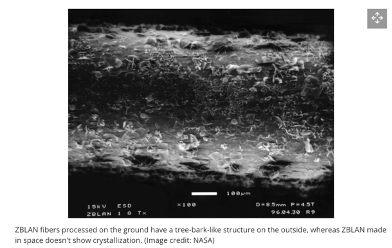 Trenutni podoceanski kabli, narejeni iz silike, ki so zadolženi za prenos 99% podatkov imajo veliko boljše pogoje za optimalno izdelavo v breztežnostnem prostoru. Takšna optična vlakna se imenujejo ZBLAN in so 10-100x bolj zmogljiva. Z njimi uporaba repeaterjev vsakih 50km čez morje recimo nebi bila več potrebna. Efektivnost prenosa se poveča, zaradi manjših izgub, ki so posledica veliko manj mikro-kristalov v samem kablu, namreč mikro-kristalov pri izdelavi v breztežnostnem prostoru praktično ni (glej sliko spodaj). Firma Made in space Inc jih v sodelovanju z Naso na ISS razvija že štiri leta, ampak imajo seveda problem z masovno proizvodnjo.