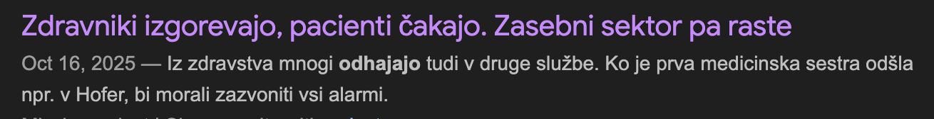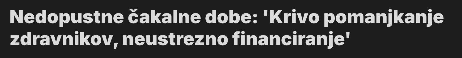 Posledica tega je, da povprečni zaposleni verjame, da imamo brezplačno zdravstvo, pri tem da ga plačuje 570 eur mesečno. Pri tem, da se čakalne dobe merijo v letih in primanjkuje kadra do te mere, da ljudje ostanejo brez osebnega zdravnika. Res imamo super in brezplačno zdravstvo.