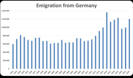 Seveda je tudi drugje po EU situacija slaba. Mnoga glavna mesta na žalost postajajo nevarna in nevzdrževana. Npr. 1.2mio Nemcev se je v 2022 preselilo iz Nemčije. Trend je jasen od 2013 dalje.