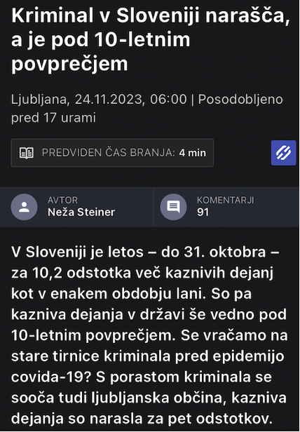 “35,613 people immigrated to Slovenia and 20,956 emigrated from it. 3,708 Slovenian citizens immigrated to Slovenia or 6% fewer than a year ago. 6,430 citizens of Slovenia emigrated from the country, or about 10% more than a year ago.” - SURS 2022