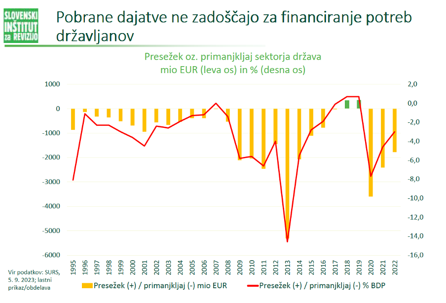 Po mojem osebnem mnenju država zapravlja več kot si lahko privošči (matematika). Razliko pokrije z dolgom, ki vsako leto raste. Posledico tega lahko med drugim vidite v inflaciji dobrin in sredstev.