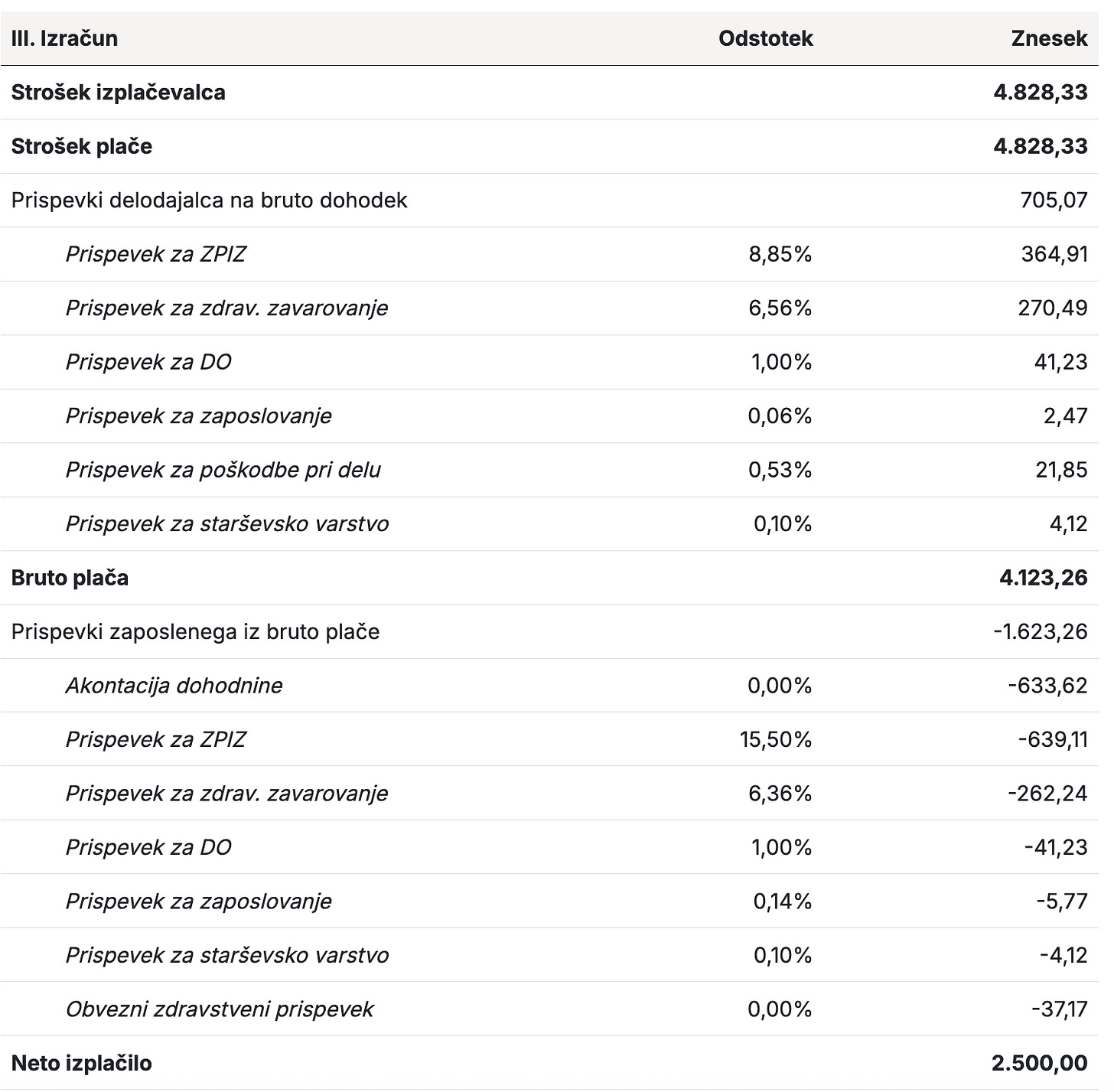 Prebivalec, ki ima 2,500 eur neto plače stane delodajalca 4,828 eur. To pomeni, da je delodajalec pripravljen/sposoben plačati delavca 4,828 eur mesečno. Vsa razlika vmes pa gre državi, namesto delavcu.