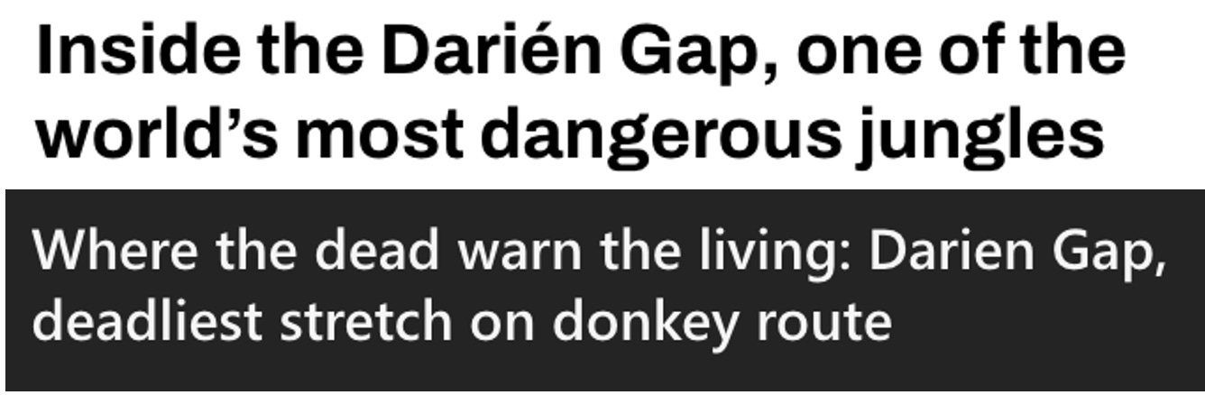 Mainstream novice govorijo preposto zgodbo. Venezuelci, Ekvadorci, Haitijci in Kolumbijci si želijo boljše življenje, stran od diktature, mafijskih tolp in ekonomskega opustošenja, zato so pogumni in prečkajo Darien džunglo, vse za ameriške sanje. Dajmo jim pomagat...