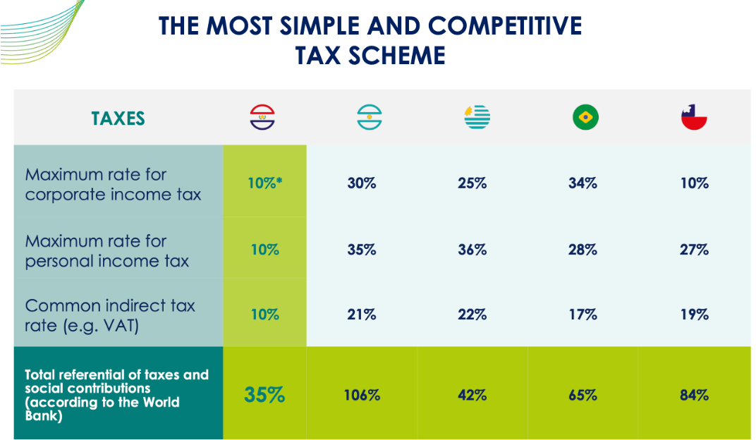 10% davek na dobiček (za osebni in biznis) samo za dejavnosti v Paragvaju
