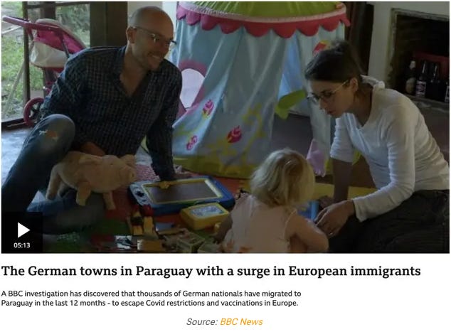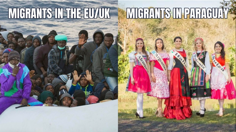 To izhaja iz dejstva, da so po 2 sv. vojni mnogi N.a.z.i.-ji pribežali v Južno Ameriko. Naselili so se v severnem Paragvaju in severni Argenitni in posledično je 30-40% ljudi odtenek belih z nemškimi koreninami, kar pomeni, da Evropejci ne izstopamo kot npr. ponekje drugje po LatAm.