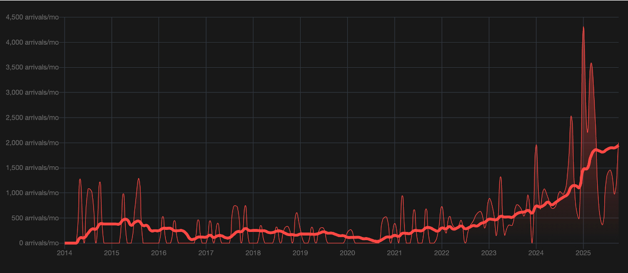 Velik pritok v zadnjih letih.