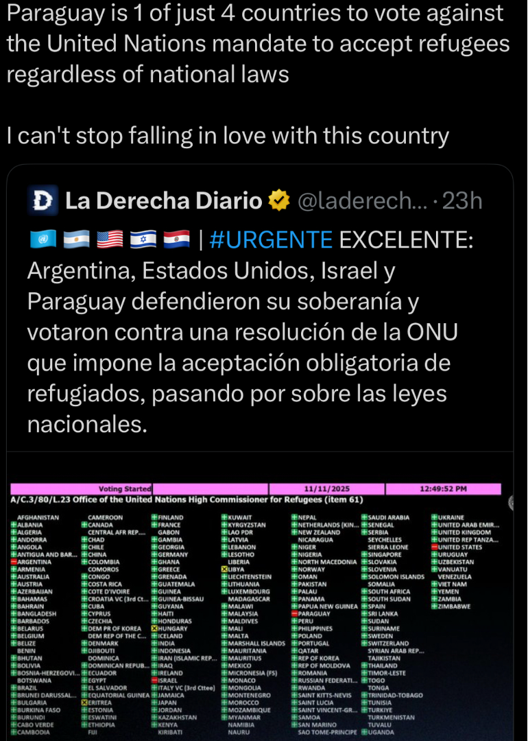 Kolumbija in Mehika sta že prepravljeni z Američani, ki prihajajo na poceni počitnice, sex turizem, ipd. Tip povprečnega turista tam je grozen. Ljudje, ki trenutno prihajajo v Paragvaj od zunaj so totalno drugačne sorte (borci iz ozadja)... večinoma iščejo off grid kmetije, backup stanovanje za krizo in diverzifikacijo, nižje davke in manj regulacij, konzervativno politiko daleč stran od EU norije, nove poslovne investicije, itd.