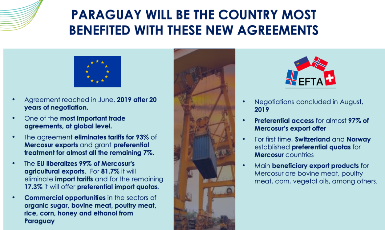 Paragvaj je core mercosur member, kar jim prinese nekaj privilegijev v Južni Ameriki.