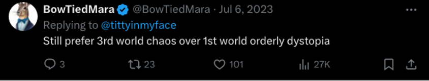 Biti mlad s povprečno ali slabo službo, brez normalnega stanovanja in drugih finančnih predizpozicij zna biti izjemno težko. Sploh, če je okoli tebe 80% ljudi woke in ne vidiš poti ven ter ti misli dobesedno megli ljubljanska megla večino leta. Z veseljem ti sporočam, da delo v Nemčiji in gamblanje z shitcoini nista edini rešitvi. Zbriši socialna omrežja, pusti neuporaben ekonomski faks, pojdi za štiri leta na irsko naftno ploščad ali v Lihtenštajn za natakarja, delaj 24/7, živi v šibični škatlici (kar bi itak tudi v LJ) in prišparal boš +50k. Istočasno se začni učiti špansko. S tem in z znanjem španščine se lahko po štirih letih preseliš v LatAm, kjer si kupiš malo stanovanje in še preostane ti za +2 leti življenskih stroškov, kar je dovolj časa, da ugotoviš kaj te veseli in katero priložnost zasledovati/začeti. Do takrat, ko ostali 27 letniki zaključijo faks boš imel nepozabne izkušnje, uporabno znanje, svoje stanovnje, kreativne ideje in še kakšno latinsko pokahontas za povrhu. V problemu leži priložnost.