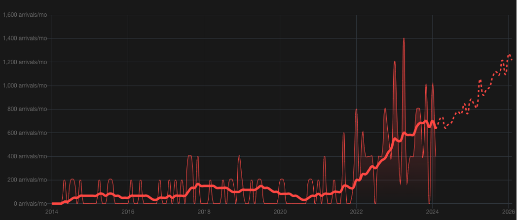 Zgoraj je graf za Asuncion iz Nomadlist, kjer 350.000 digitalnih nomadov iz vsega sveta vpisuje trenutno in prihodnjo načrtovano lokacijo nastanitve... “to the moon”.