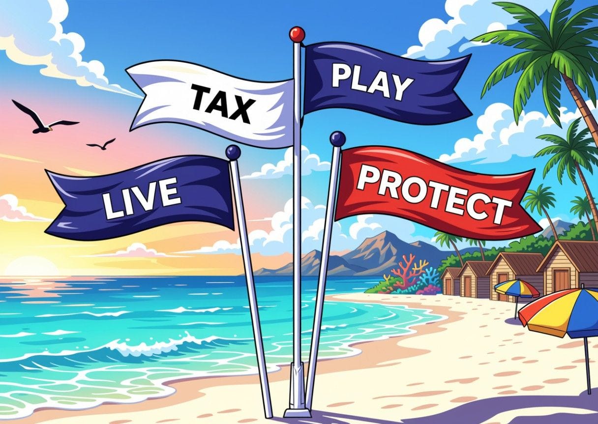 Za vreme in kulturo greš v Španijo. Za banke greš v Singapur. Za dobro službo greš v ZDA. Po dober trezor greš v Švico. Za IT zasebnost greš na Islandijo. Za pobeg vojni in dober dating greš v Latinsko Ameriko. Za poceni lajf greš v Azijo. Za luxury in nižje davke greš v UAE, …