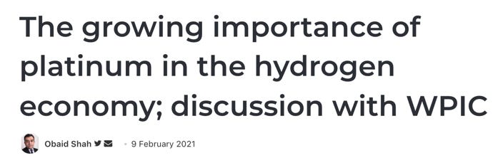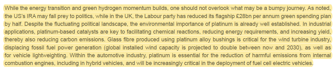 Poleg tega je dobro tudi razumet, da največ investirajo v sam research vodikovih celic ravno proizvajalci platine, saj se jim gre, da bi dobili večji market. Bottom line: long platinum = long FCEV