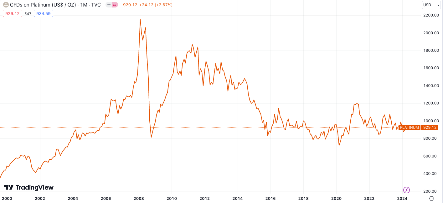 Platina se še naprej konsolidira okoli 900 usd, kar je enaka cena iz 2004 oz 2008: