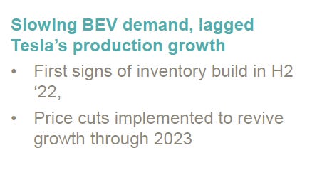 Edini razlog za veliko rast so bile velike subvencije in “hype”. Države in ljudje imajo manj razpoložljivega dohodka, zato so subvencije manjše in manj volumna prodaje. Mnogi so tudi kupili EV in ugotovili, da “hype” ni vreden (če nimaš dovolj denarja še za en dodaten avto z notranjim izgorevanjem).
