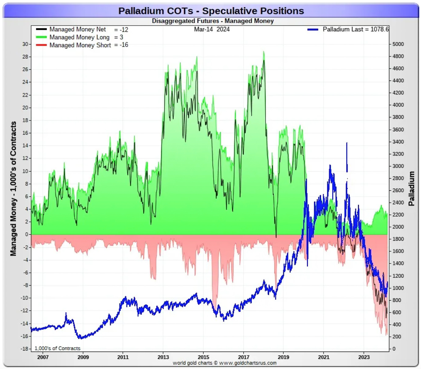 -traderji so se obrnili izjemno bearish na paladij zaradi pričakovanega “propada” bencinskih vozil v prihodnosti, kar se tudi vidi spodaj: