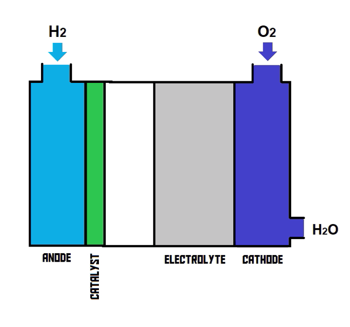 Pretvarja kemično energijo v električno, s tem ko katalizator loči elektrone in protone v vodiku,... whatever. POINT JE, da je katalizator iz platine!
