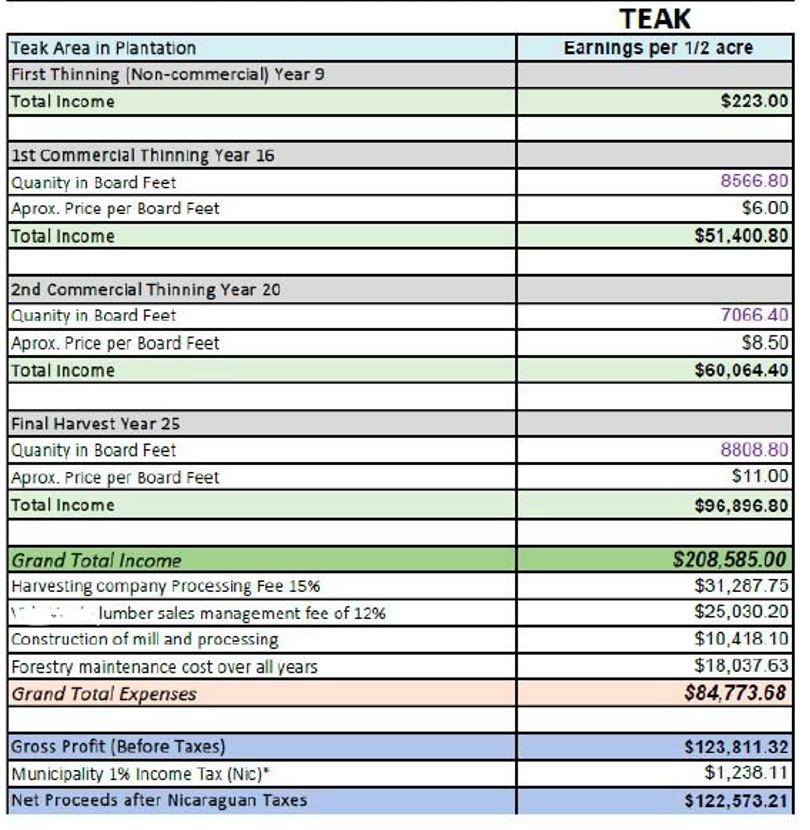 Nikaragva ima "znano" proizvodnjo tikovega lesa za investicije, zato sem si želel ta segment prečesati malo bolj podrobno.