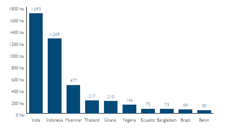 97% vseh hlodov se trenutno uvozi v Indijo! in 2.5% na Kitajsko! Če govorimo o razsekanem lesu pa se uvozi 47% na Nizozemsko (za večino EU - pride iz Singapurja) in 26% v Indijo.