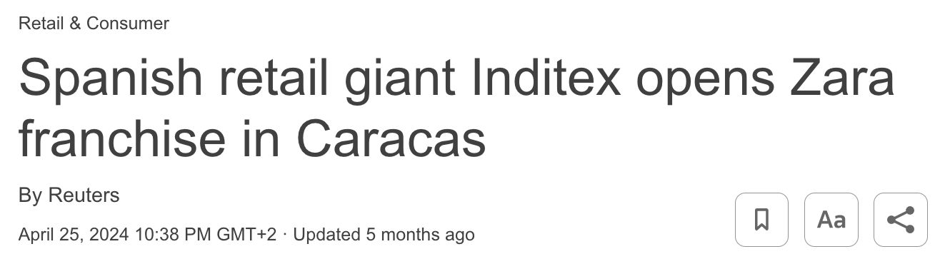 Industrija in trgovina se ponovno oživljata: trgovine Zara in Renault so se leta 2024 vrnile v Venezuelo:
